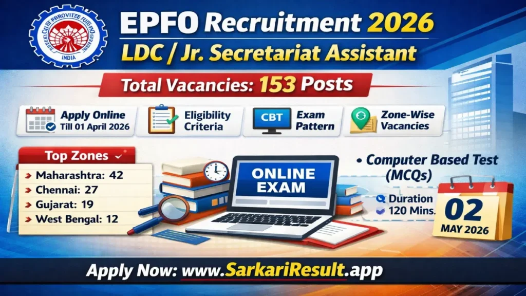 The EPFO Recruitment 2026 notification has been released for 153 Lower Division Clerk (LDC) and Junior Secretariat Assistant (JSA) posts, offering a great opportunity for candidates seeking stable government jobs. Interested applicants can apply online through the official portal and take advantage of this large-scale recruitment drive.