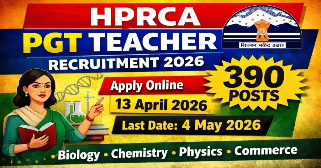 The HPRCA Recruitment 2026 has announced a total of 390 vacancies for PGT posts in different subjects such as English, Mathematics, Physics, Chemistry, Biology, History, Political Science, and others.